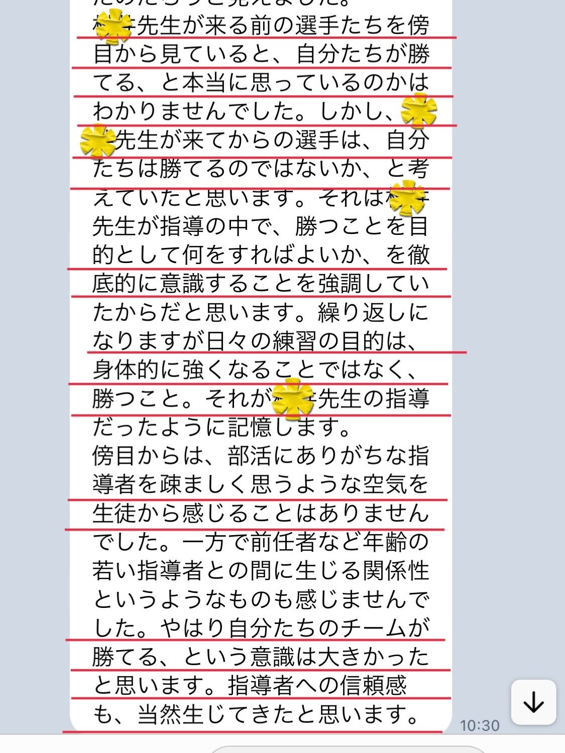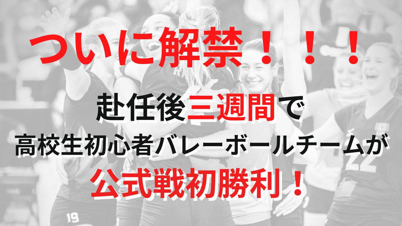 理想の指導者像を求め、これまでの指導を180度変えた結果、赴任後三週間で初心者弱小バレーボール部を公式戦初勝利に導くことができた。