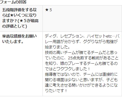 高校生初心者バレー部の選手からの感想